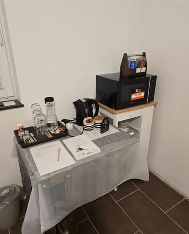 Includes coffee machine, projector, Wi-Fi, and blackout curtains.